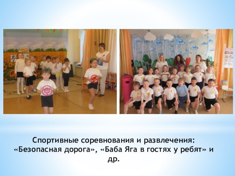Слайд 48Спортивные соревнования и развлечения: «Безопасная дорога», «Баба Яга в гостях у