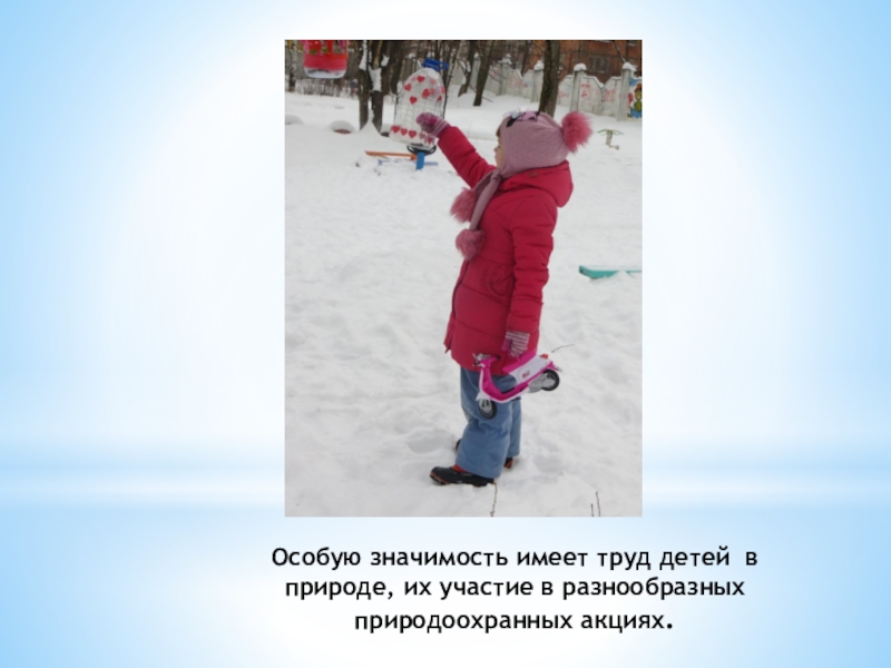 Слайд 34Особую значимость имеет труд детей в природе, их участие в разнообразных