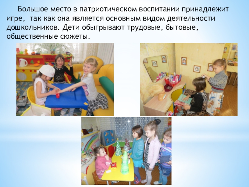 Слайд 33 Большое место в патриотическом воспитании принадлежит игре, так как она является