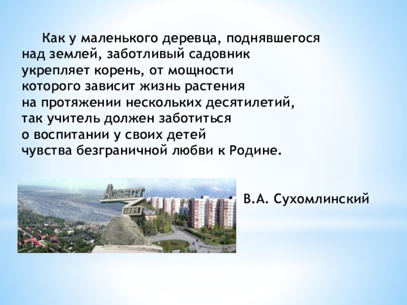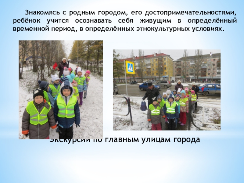 Слайд 7 Знакомясь с родным городом, его достопримечательностями, ребёнок учится осознавать себя живущим