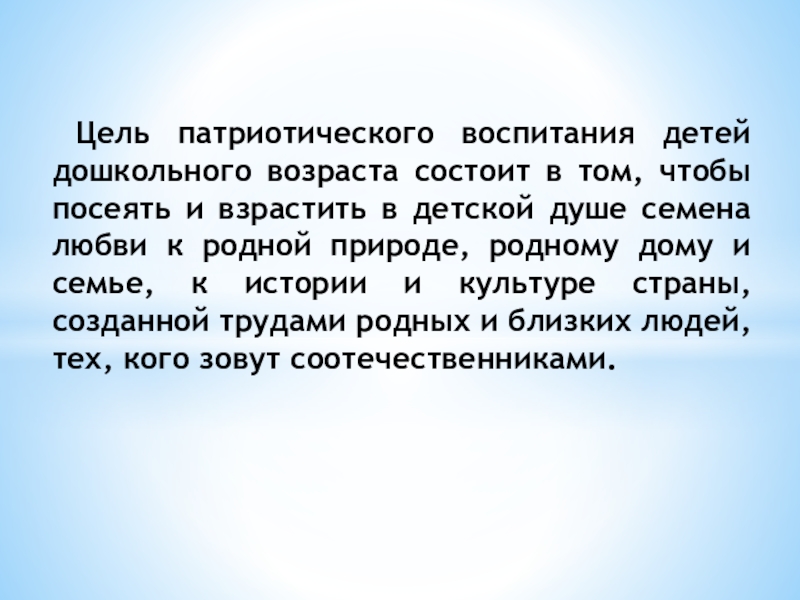 Цель патриотического воспитания детей дошкольного возраста состоит в том, чтобы посеять