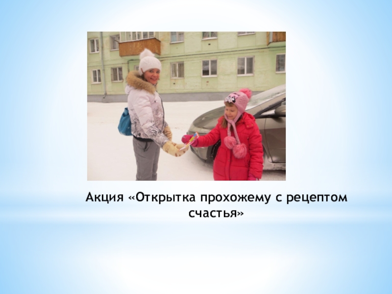 Слайд 44Акция «Открытка прохожему с рецептом счастья»