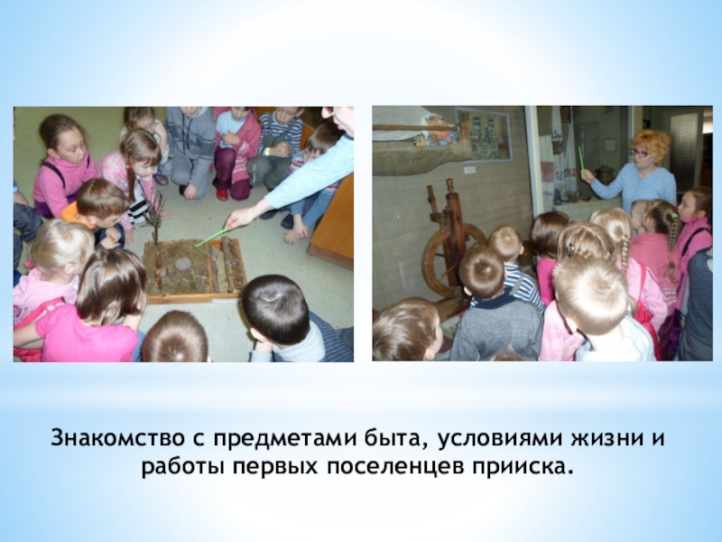 Знакомство с предметами быта, условиями жизни и работы первых поселенцев прииска.