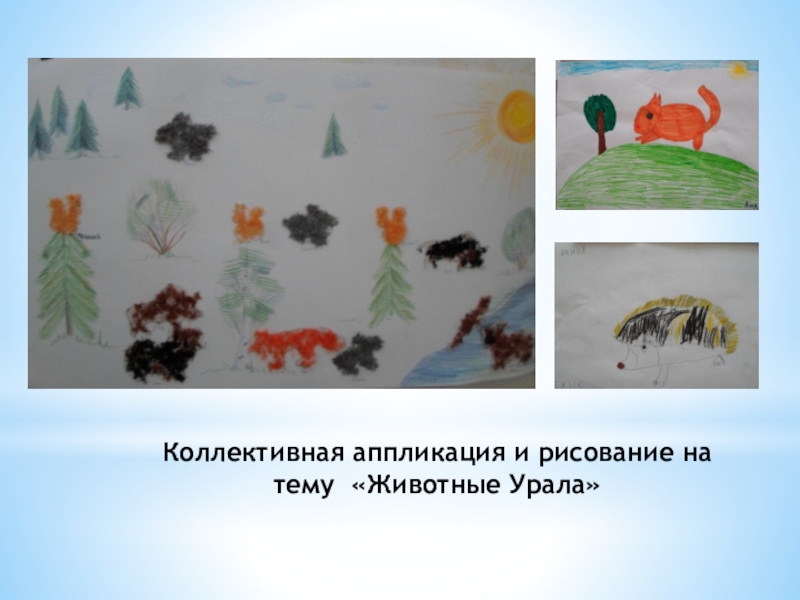 Слайд 26Коллективная аппликация и рисование на тему «Животные Урала»
