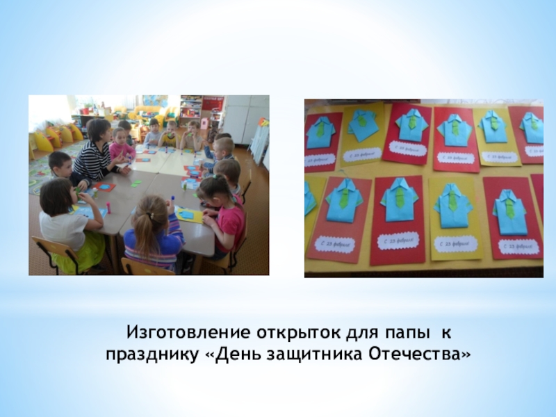 Слайд 24Изготовление открыток для папы к празднику «День защитника Отечества»