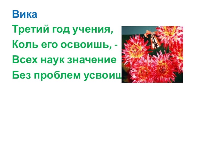 ВикаТретий год учения, Коль его освоишь, - Всех наук значение Без проблем усвоишь.