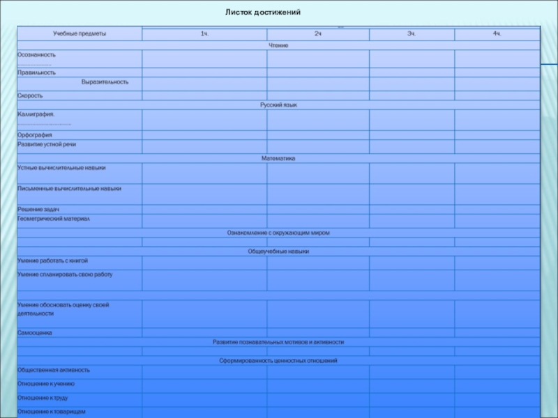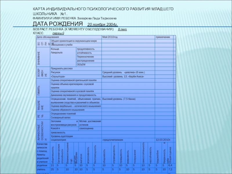 Слайд 30КАРТА ИНДИВИДУАЛЬНОГО ПСИХОЛОГИЧЕСКОГО РАЗВИТИЯ МЛАДШЕГО ШКОЛЬНИКА №1.