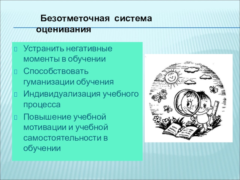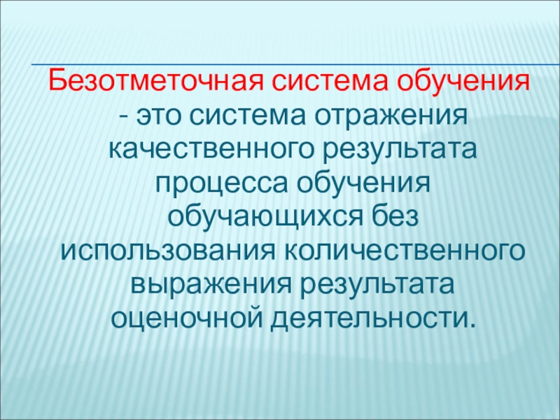 Слайд 7 Безотметочная система обучения - это система отражения качественного результата процесса