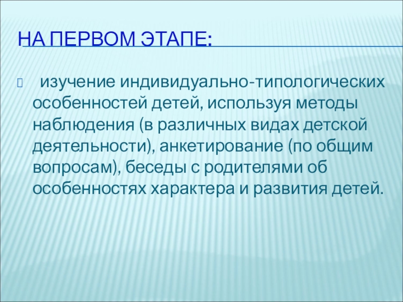 изучение индивидуально-типологических особенностей детей, используя методы наблюдения (в
