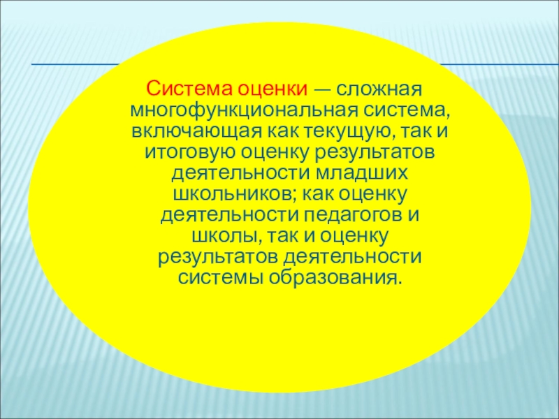 Слайд 2 Система оценки — сложная многофункциональная система, включающая как текущую,