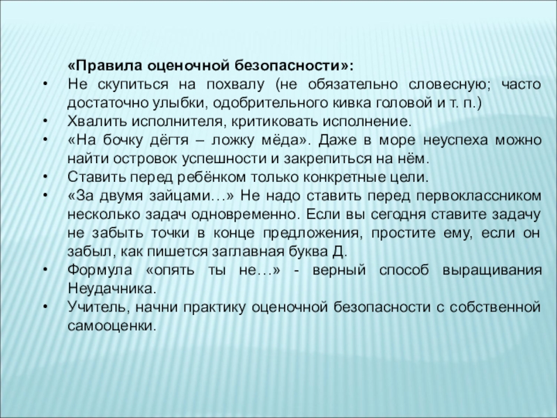 Учитель, начни практику оценочной безопасности с собственной самооценки.