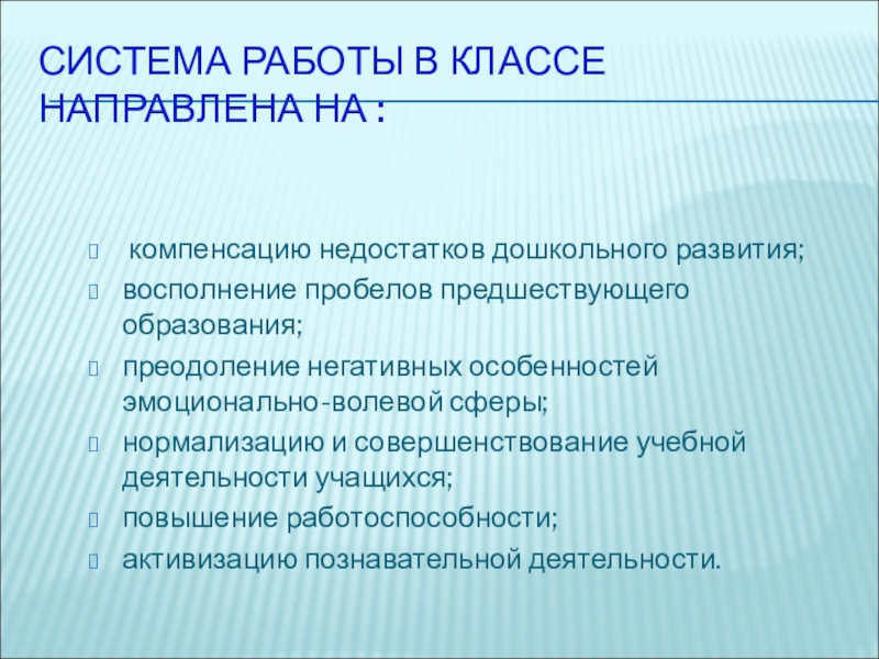 Слайд 19СИСТЕМА РАБОТЫ В КЛАССЕ НАПРАВЛЕНА НА :