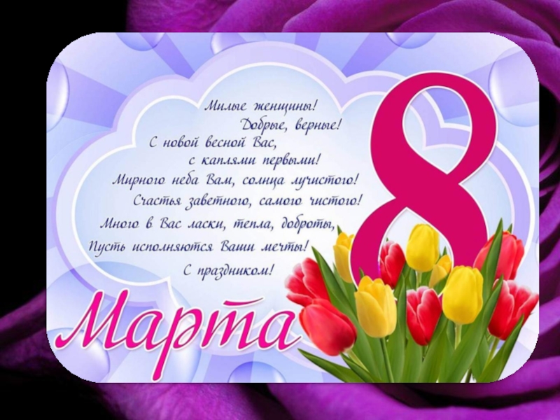 Слайд 21С днем 8 марта! С праздником весенним! С радостным волненьем В этот светлый час! Дорогие