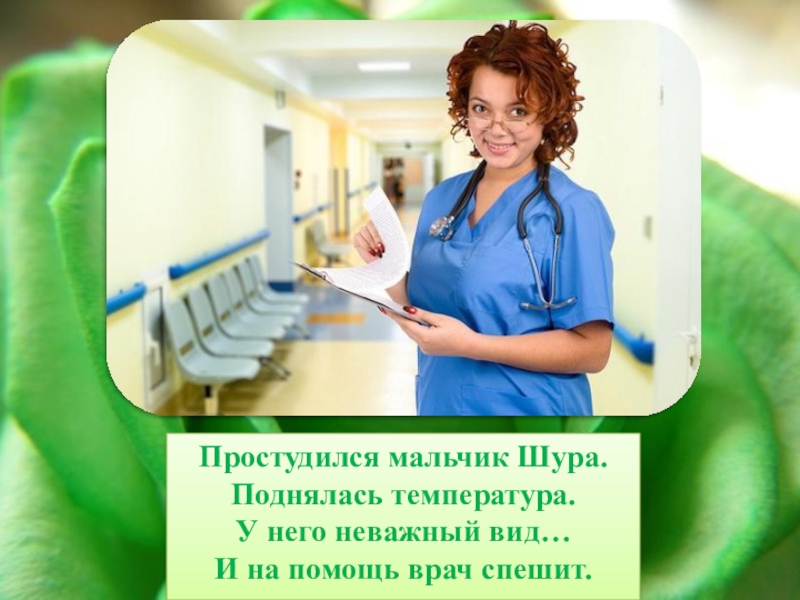 Слайд 10Простудился мальчик Шура. Поднялась температура. У него неважный вид… И на помощь врач спешит.
