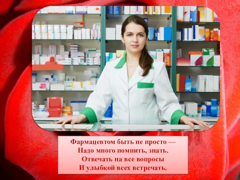 Слайд 12Фармацевтом быть не просто — Надо много помнить, знать. Отвечать на все вопросы И