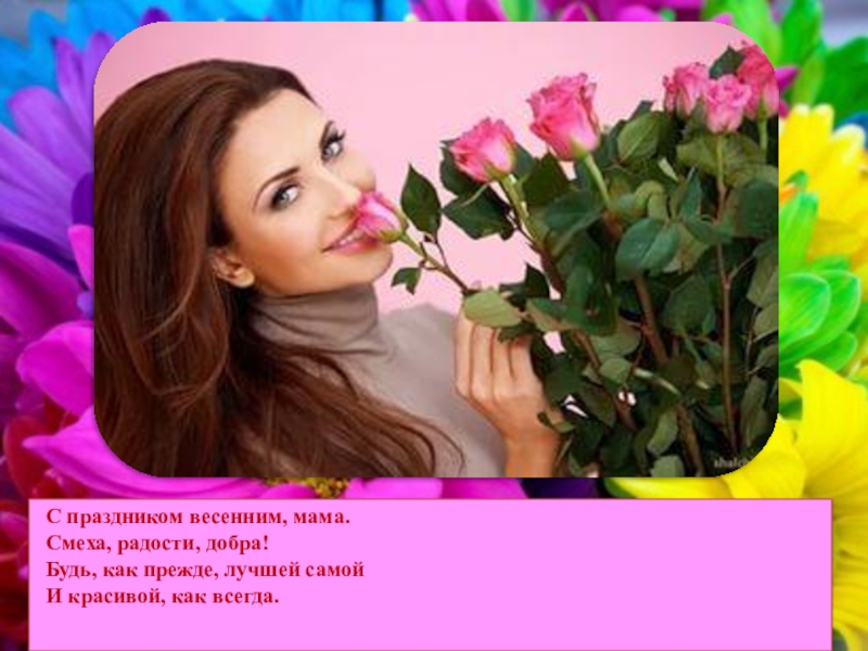 Слайд 3С праздником весенним, мама. Смеха, радости, добра! Будь, как прежде, лучшей самой И красивой,