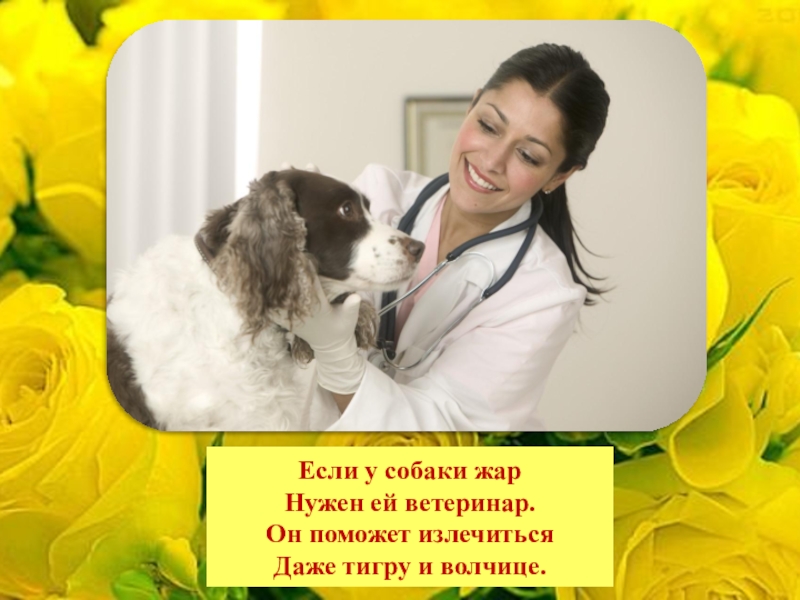 Слайд 11Если у собаки жар Нужен ей ветеринар. Он поможет излечиться Даже тигру и волчице.