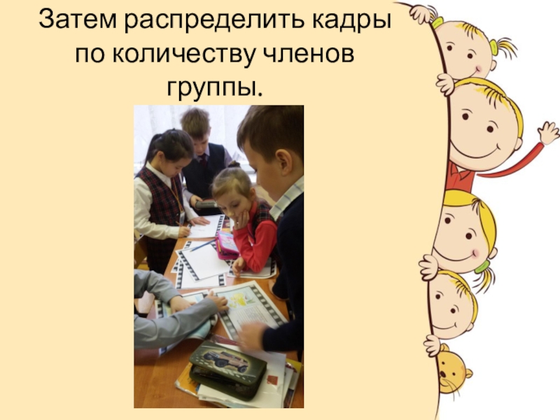 Слайд 3Затем распределить кадры по количеству членов группы.