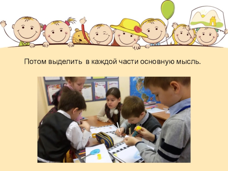 Слайд 4Потом выделить в каждой части основную мысль.