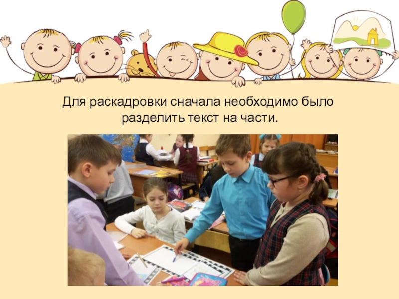 Слайд 2Для раскадровки сначала необходимо было разделить текст на части.