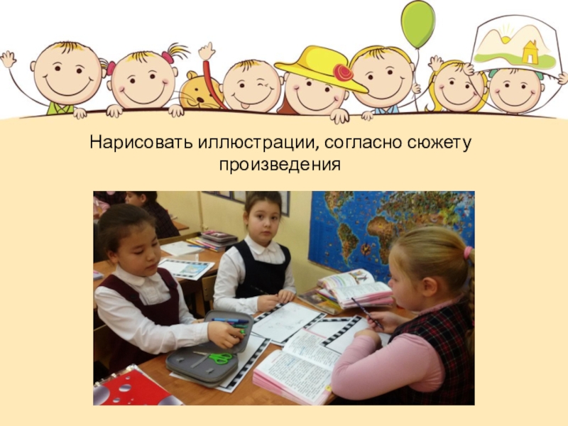 Слайд 5Нарисовать иллюстрации, согласно сюжету произведения