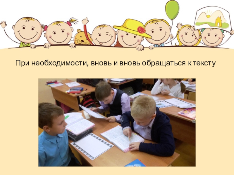 Слайд 6При необходимости, вновь и вновь обращаться к тексту