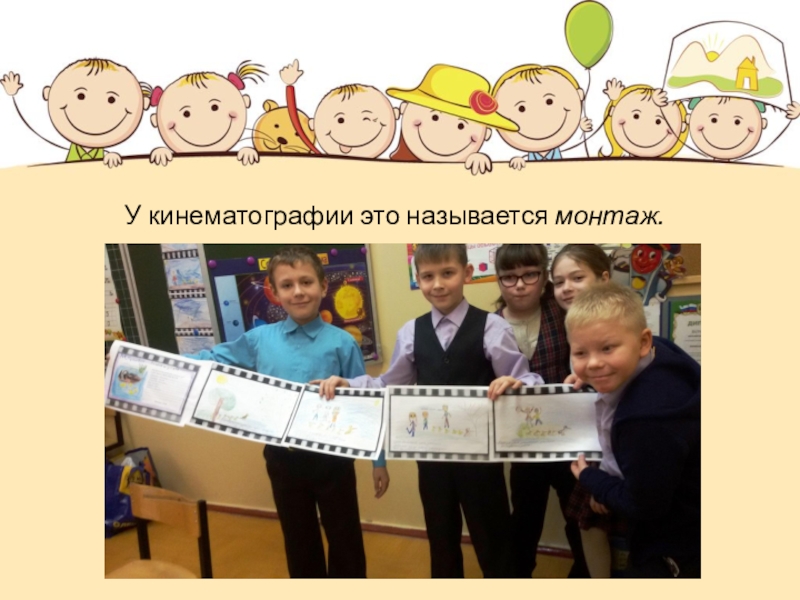 Слайд 9У кинематографии это называется монтаж.