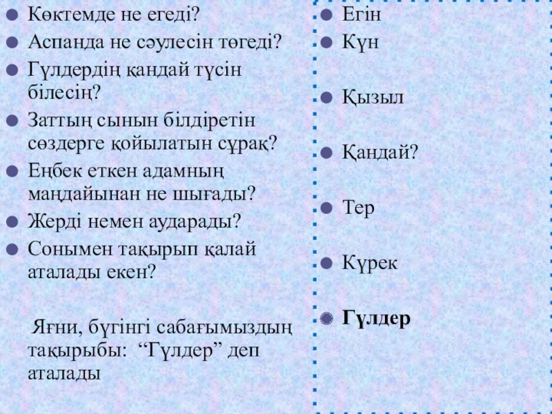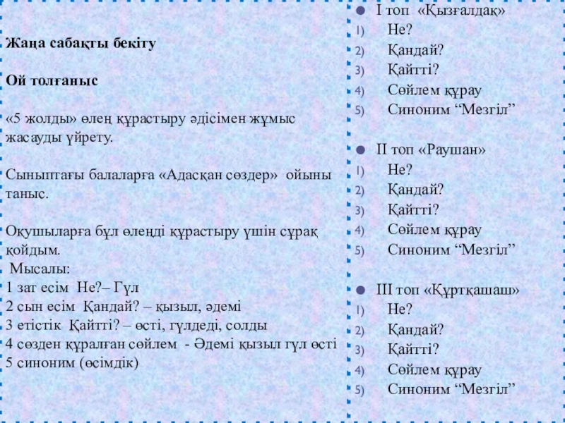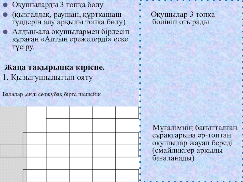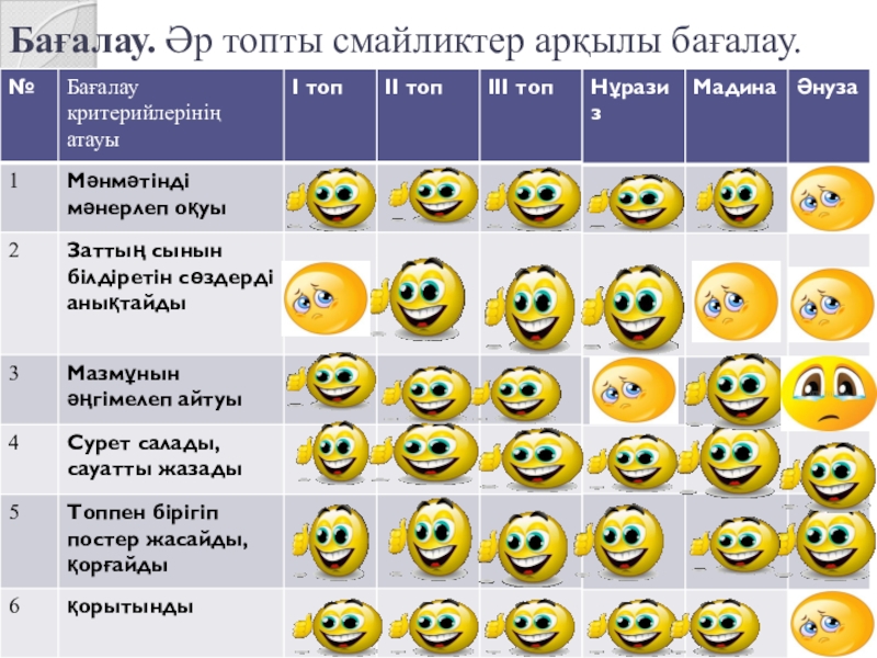 Мұғалімнің бағытталған сұрақтарына әр-топтан оқушылар жауап береді (смайликтер арқылы бағаланады)
