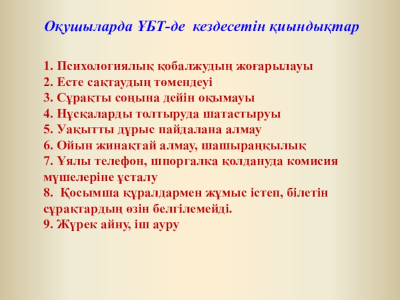 Оқушыларда ҰБТ-де кездесетін қиындықтар