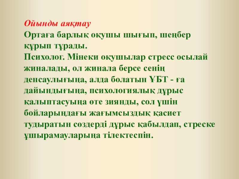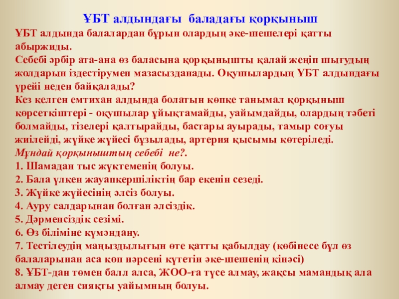 Оқушыларға ҰБТ - ні сенімді тапсыруға дайындау