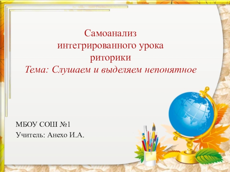 Самоанализ  интегрированного урока риторики Тема: Слушаем и выделяем непонятноеМБОУ СОШ №1Учитель: Анехо И.А.