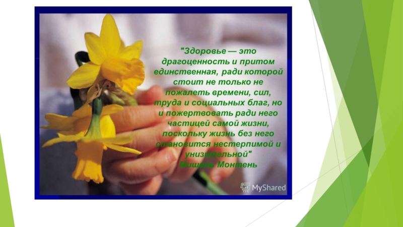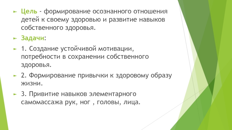 Слайд 2Цель - формирование осознанного отношения детей к своему здоровью и развитие