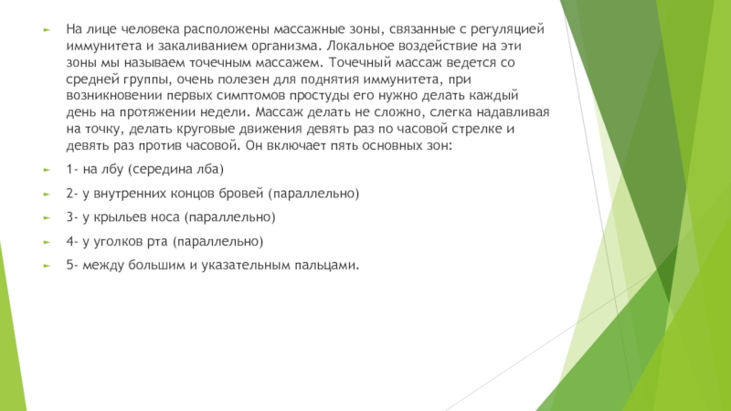 Слайд 18На лице человека расположены массажные зоны, связанные с регуляцией иммунитета и
