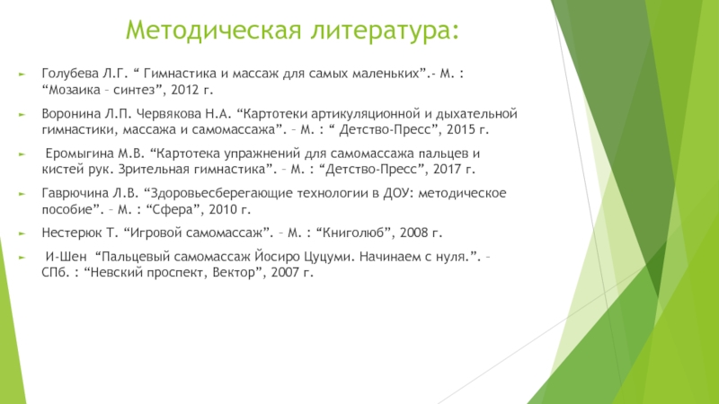 Нестерюк Т. “Игровой самомассаж”. – М. : “Книголюб”, 2008 г.