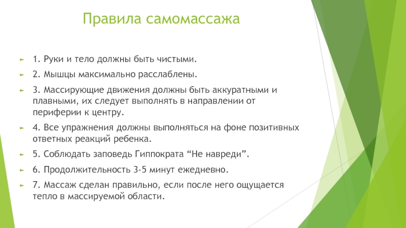 Слайд 5Правила самомассажа