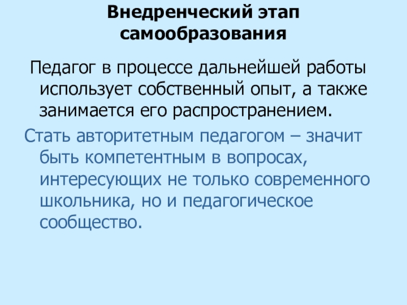 Обобщающий. Подведение итогов, оформление результатов по теме, презентация материалов на заседаниях МО, педсоветах.