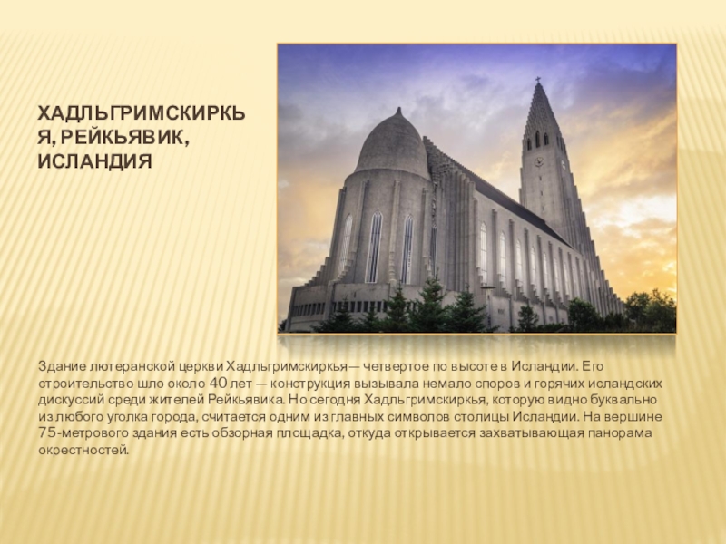 Слайд 12Хадльгримскиркья, Рейкьявик, исландия
