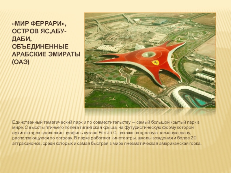 Слайд 8«Мир Феррари», остров Яс,абу-даби, ОБЪЕДИНЕННЫЕ АРАБСКИЕ ЭМИРАТЫ (ОАЭ)
