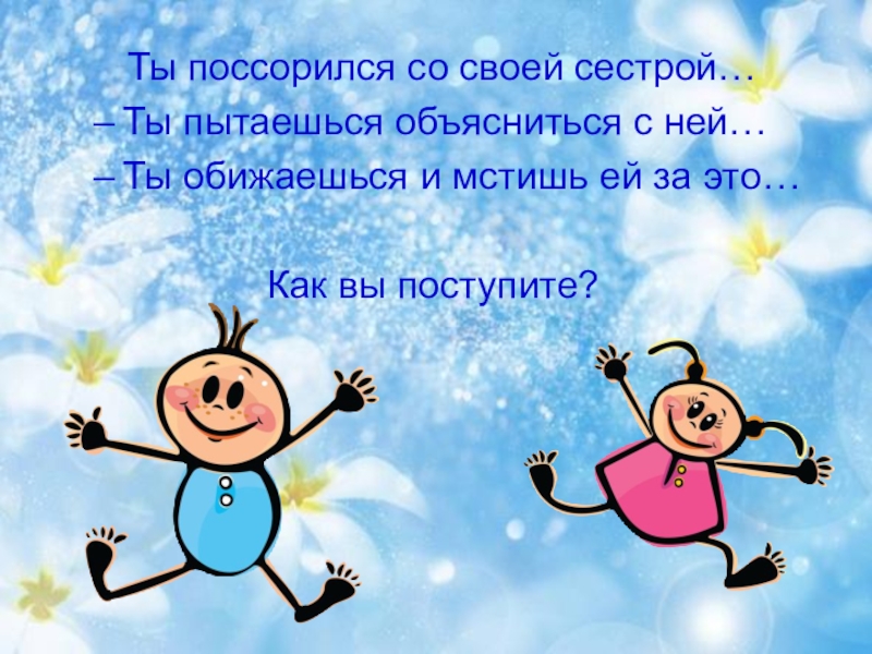 Какой вы дома… Например: Младший братишка сломал твою игрушку…