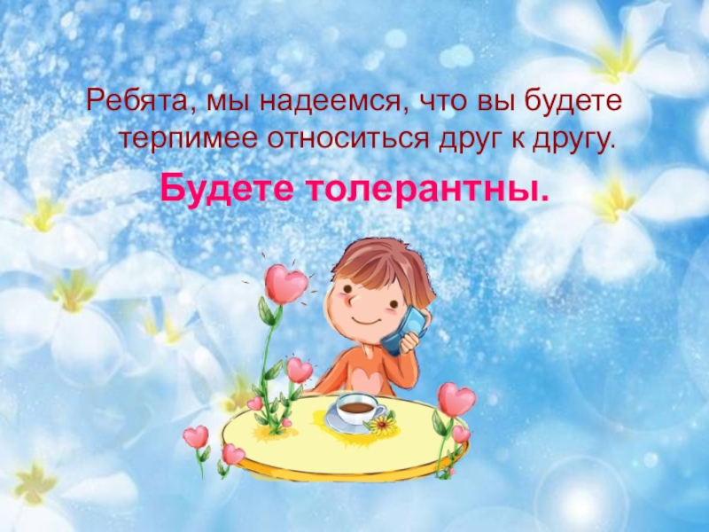 Слайд 15Ребята, мы надеемся, что вы будете терпимее относиться друг к другу.