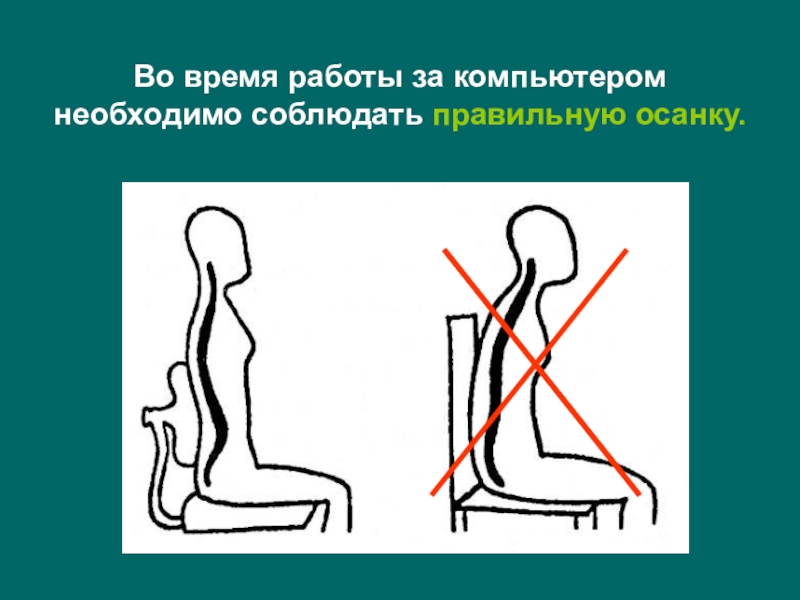 Слайд 8Соблюдение правильного режима работы на компьютере способствует также снижению напряжения глаз
