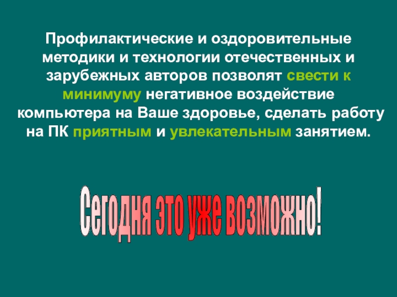 Слайд 25Профилактические и оздоровительные методики и технологии отечественных и зарубежных авторов позволят