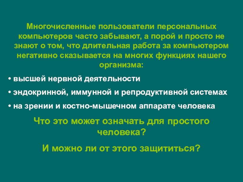 Слайд 2Многочисленные пользователи персональных компьютеров часто забывают, а порой и просто не