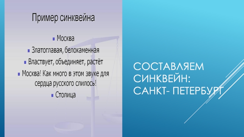 Составляем синквейн: Санкт- Петербург