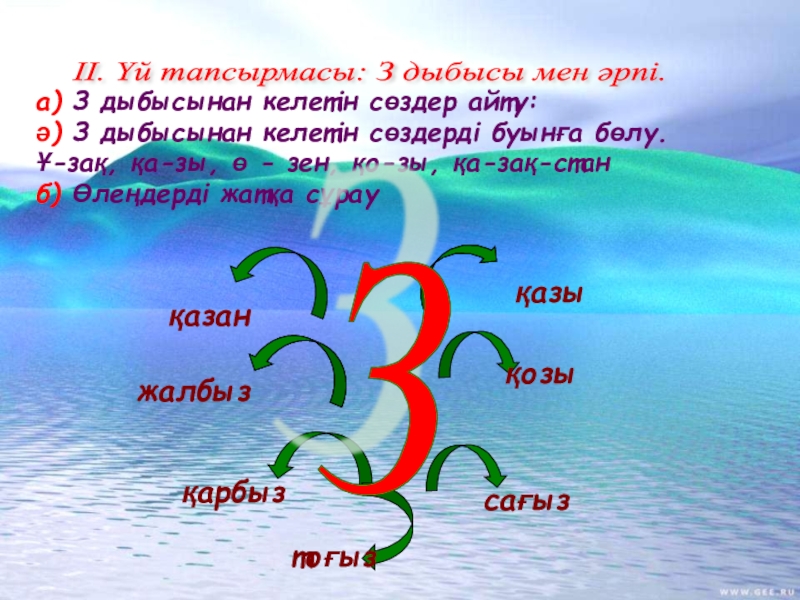 ІІ. Үй тапсырмасы: З дыбысы мен әрпі.