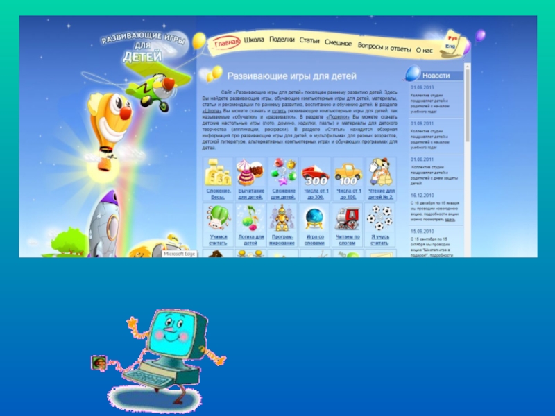 Слайд 1Сайты, предлагающие компьютерное обучение для детей