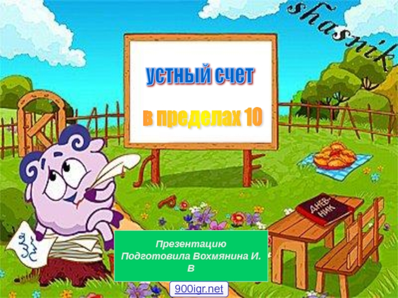 устный счет в пределах 10 Презентацию Подготовила Вохмянина И.В900igr.net