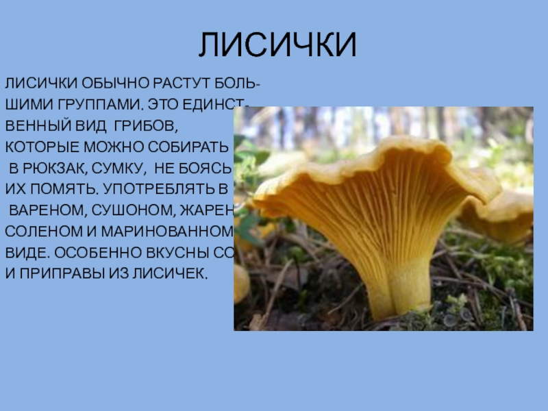 ЛИСИЧКИ ОБЫЧНО РАСТУТ БОЛЬ-