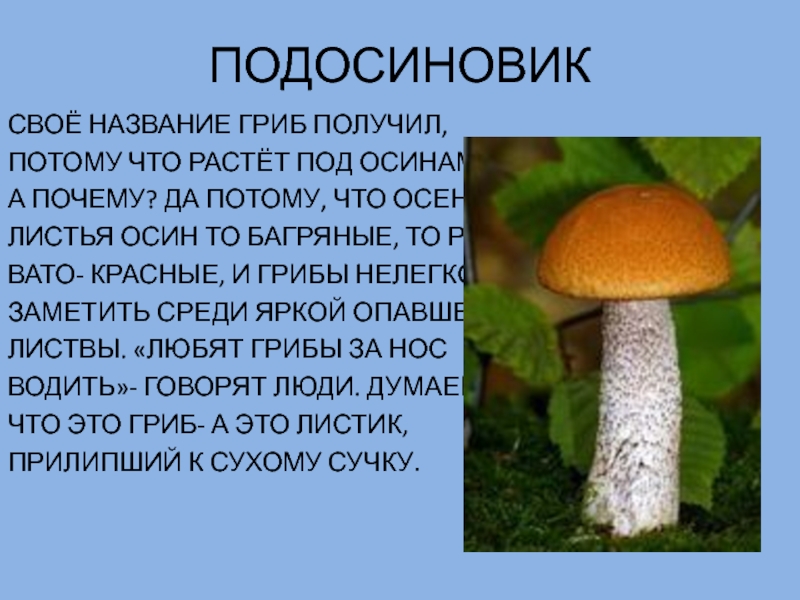 Слайд 7ПОДОСИНОВИК