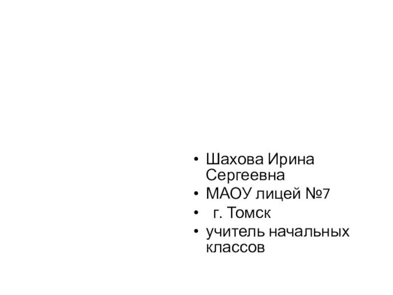 Шахова Ирина СергеевнаМАОУ лицей №7 г. Томскучитель начальных классов